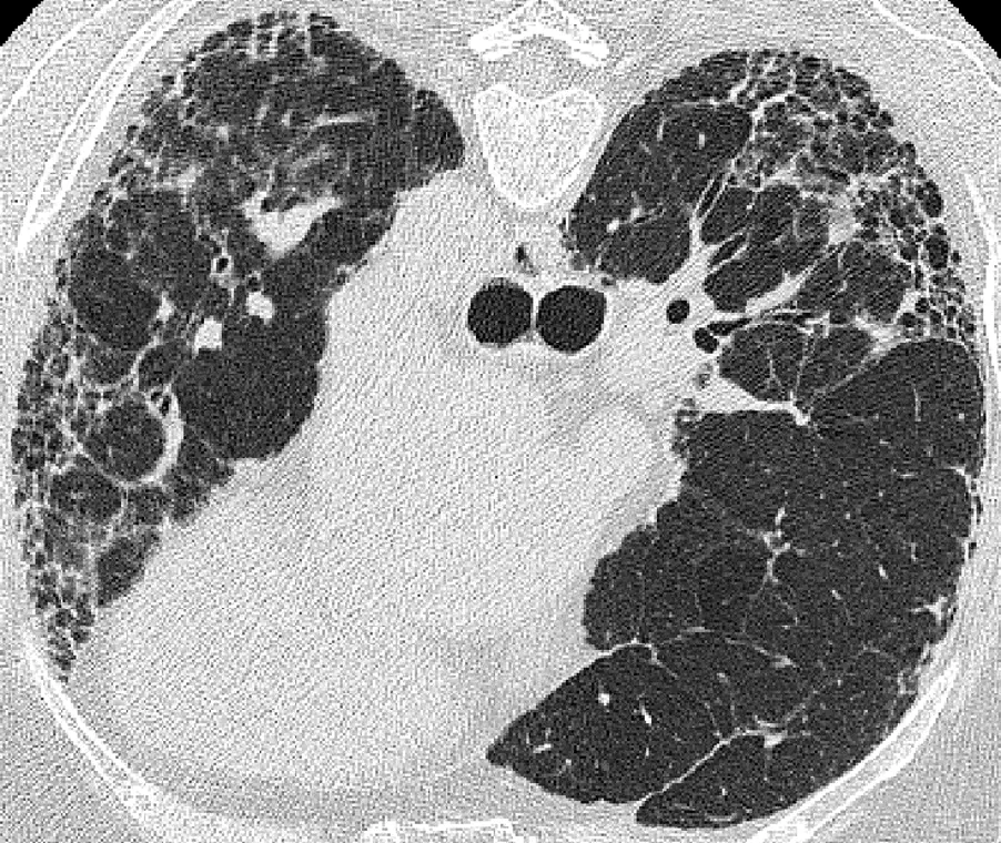 Quantitative Image Analysis (QIA) combine proprietary denoising with CT-based quantification of fibrotic lung disease, including lung volume and QILD metrics, to support precise, pattern-based evaluation of interstitial scarring.